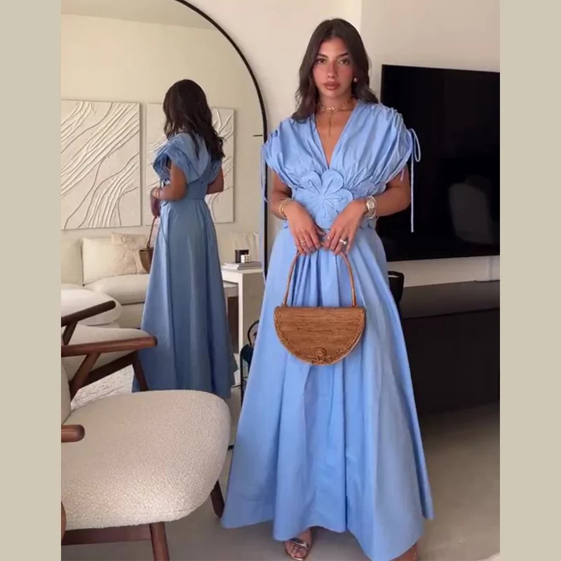تصميم الفستان الأصلي يبرز الخطوط الأنيقة والبسيطة، مما يجعله مناسبًا لمجموعة واسعة من المناسبات.